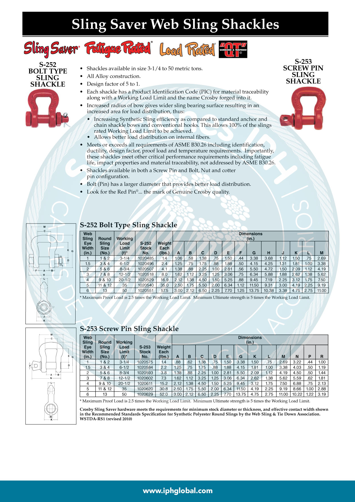 CROSBY® é um dos maiores e mais reconhecidos fabricante de acessórios para elevação de cargas no mundo, oferece uma diversificada gama de produtos desenhados para superar os padrões mais exigentes de qualquer indústria, especialmente o petróleo onshore e offshore, a construção civil, içamentos de grande porte, mineração e transporte.